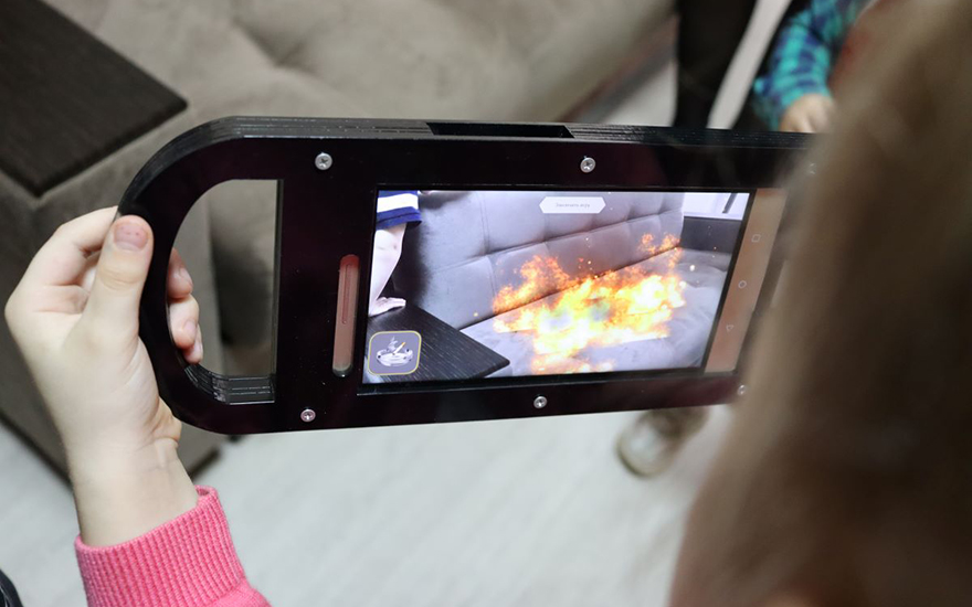 Одним из пунктов «маршрута» стала демонстрация правил пожарной безопасности в быту. С помощью возможностей дополненной реальности было продемонстрировано, как важно не оставлять без присмотра включенные бытовые приборы, вовремя заботиться об исправности камина или печи, электропроводки, газового оборудования.
