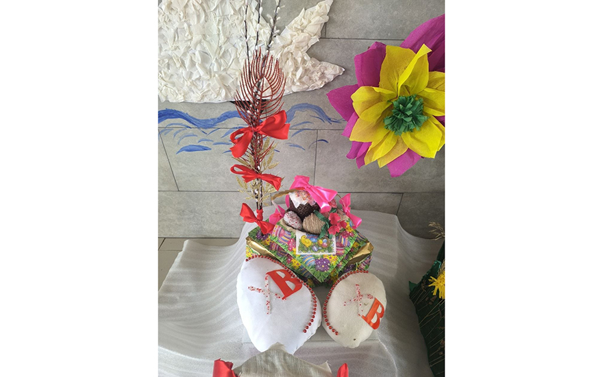 Теперь ожидание рейса — это не просто пауза в пути, а возможность прикоснуться к празднику. В центре композиции — стилизованная горка с румяными куличами, разноцветными яйцами, нежной вербой и цветами. В каждую деталь вложена душа, чтобы создать атмосферу домашнего тепла для тех, кто уезжает к родным или возвращается домой.
