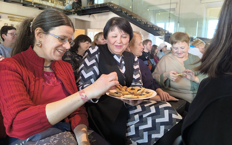 Геннадий Пшенник (представитель благотворительной организации «Хэсэд-Рахамим») увлекательно рассказал историю праздника и угостил всех фирменной выпечкой.
