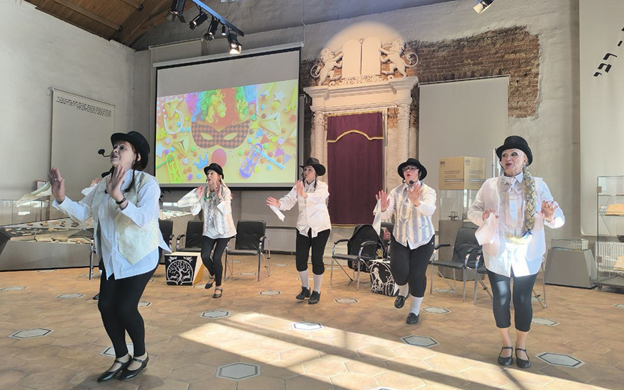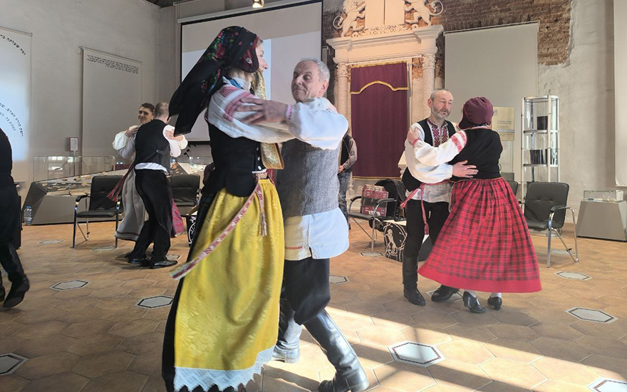 Научный сотрудник музея Юлия Анацкая провела мастер-класс по народным танцам. «Кадриль-ножницы», «Полька» и даже «Гирша-мойша» — под такую музыку пускались в пляс гости праздника.