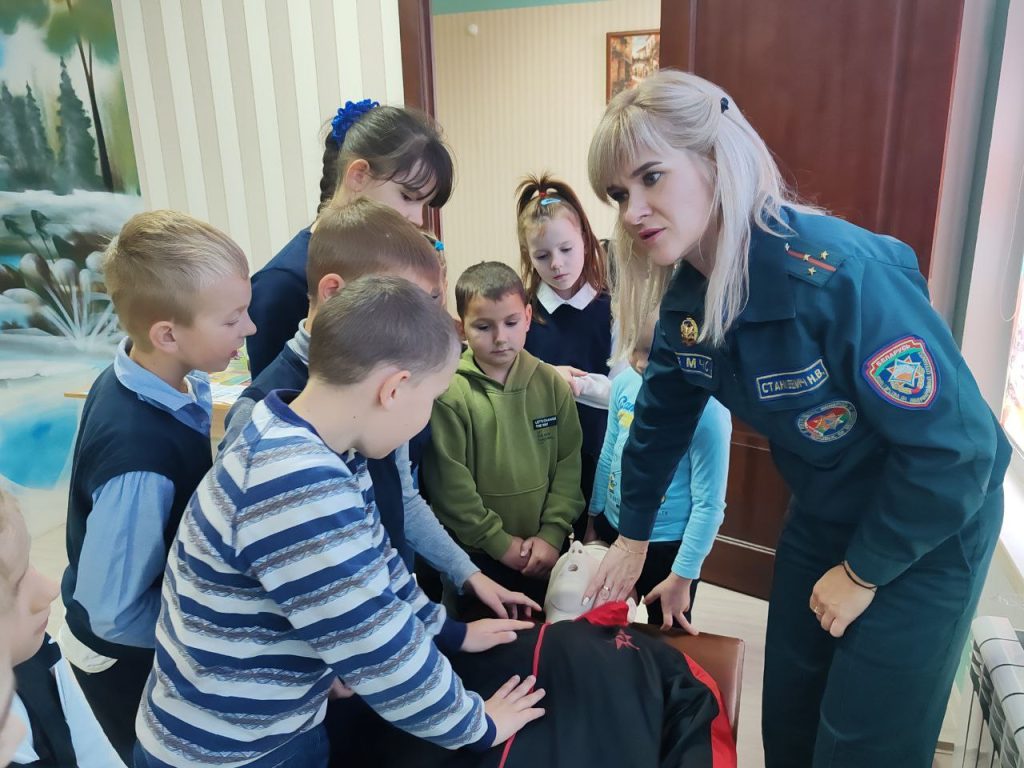 Немаловажным моментом при посещении центра безопасности является демонстрация посетителям оказания первой помощи пострадавшему. Традиционно самые элементарные навыки отрабатываются на манекене.