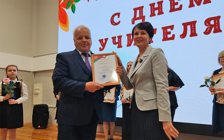 Игорь Владимирович вручил высокую награду – грамоту Министерства образования Республики Беларусь заместителю директора по основной деятельности Першайской средней школы Галине Артишевской.