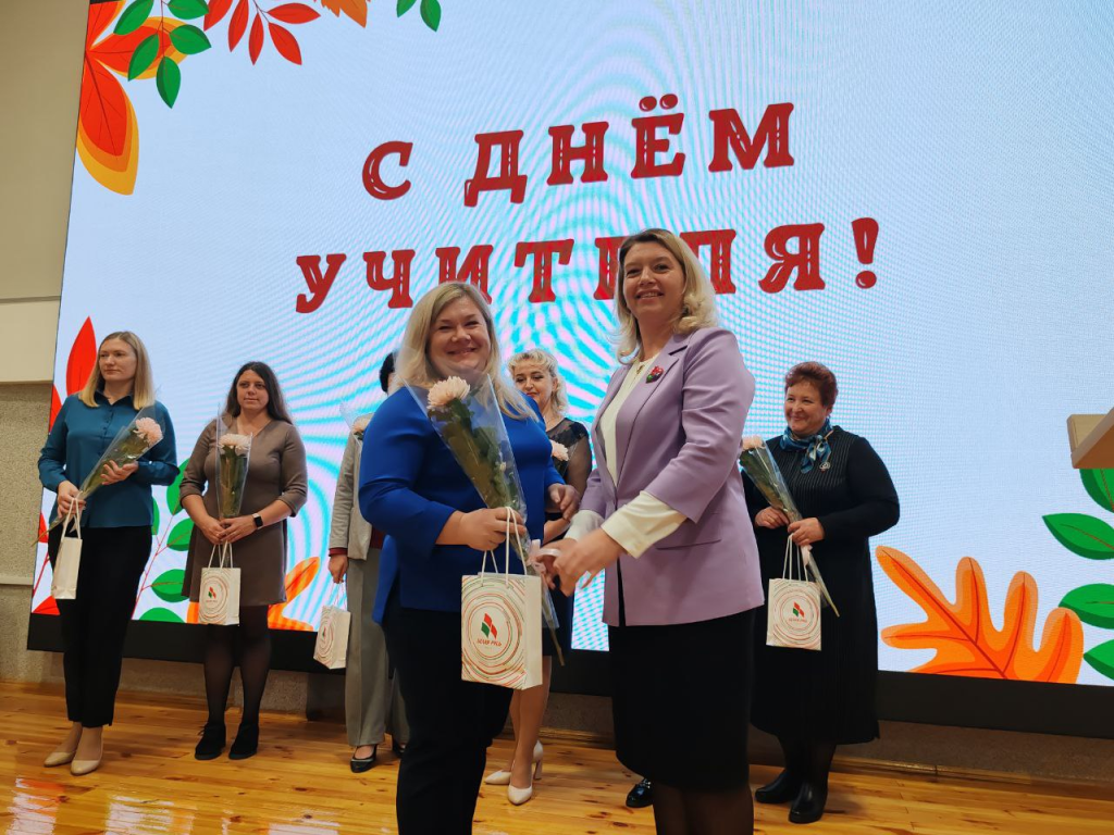 От Белорусского союза женщин памятные подарки в честь профессионального праздника своим коллегам вручила методист районного учебно-методического кабинета Валентина Залеская.