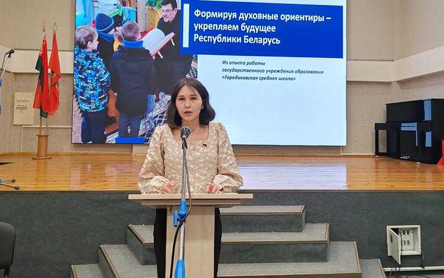 заместитель директора по основной деятельности Городьковской средней школы Лаура Радыно по теме «Формируя духовные ориентиры – укрепляем будущее республики Беларусь»