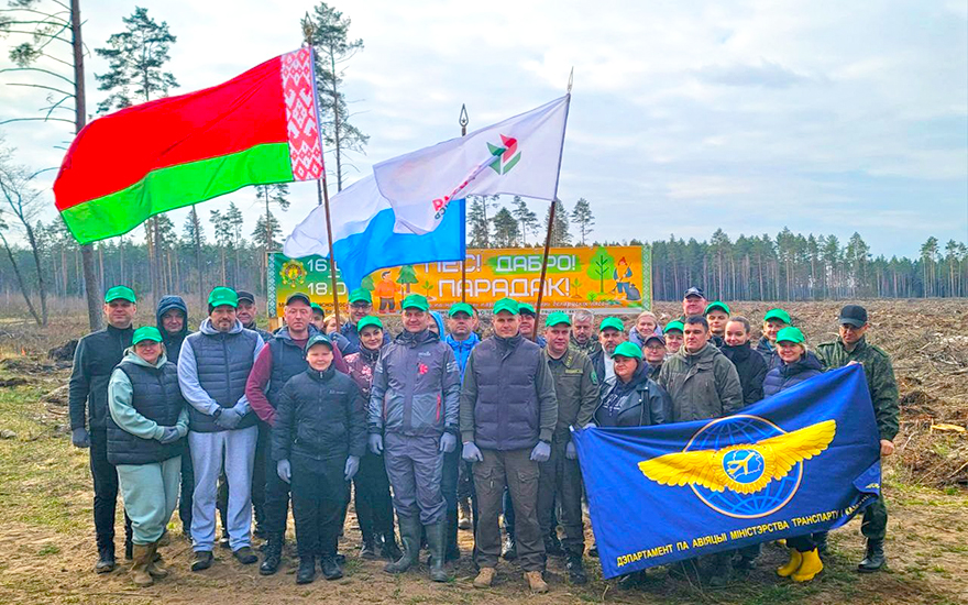 На территории Воложинского лесхоза работники Минтранса и Департамента по авиации на площади 10 гектаров высадили саженцы березы. Немногим ранее силами работников лесного хозяйства на этом же участке была посеяна сосна. Уже через 10 лет здесь зашумит молодой смешанный лес — живое напоминание о важности единства и заботы о природе.