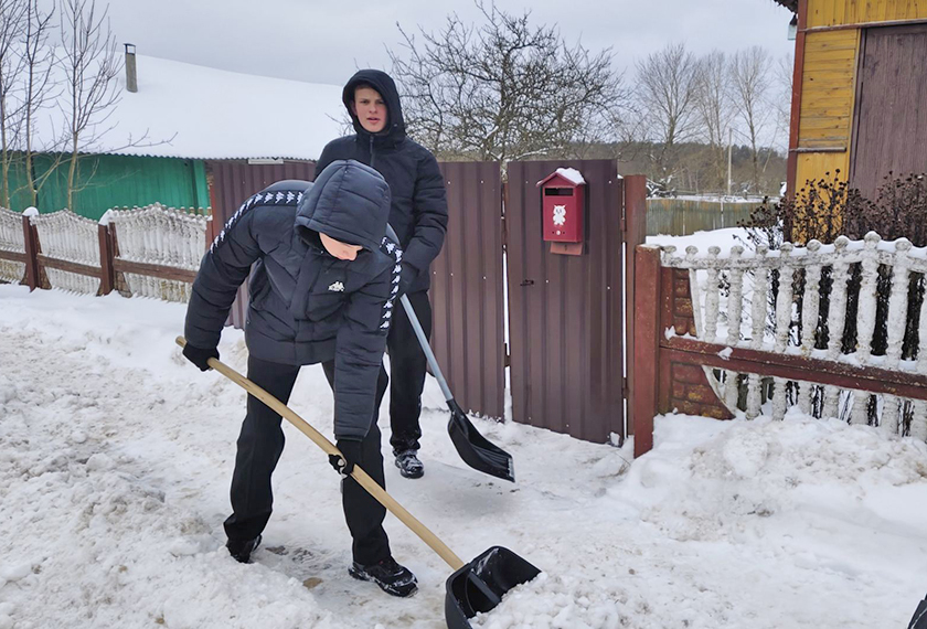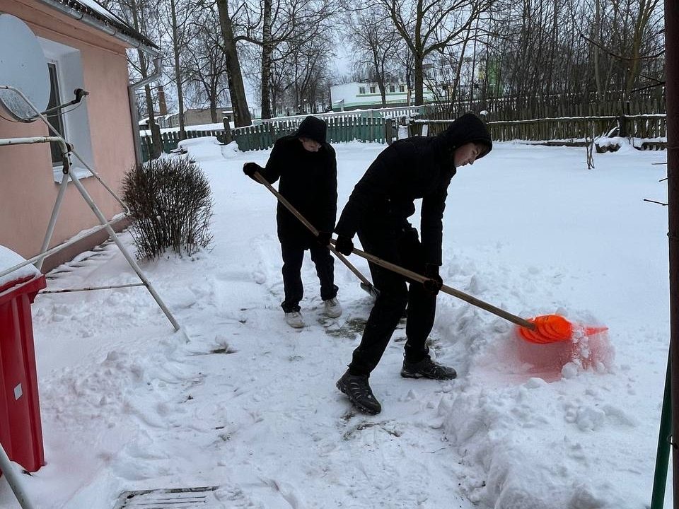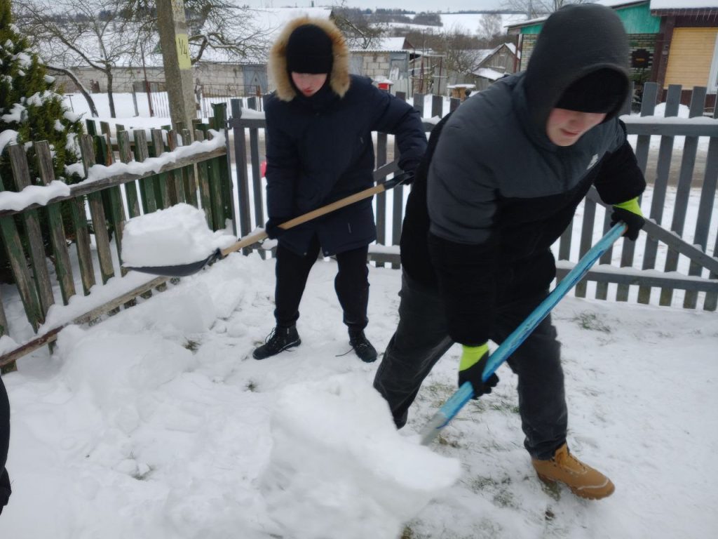 Участники волонтерского отряда «Доброе сердце» Ивенецкой средней школы помогли в уборке снега одиноко проживающим пожилым людям.