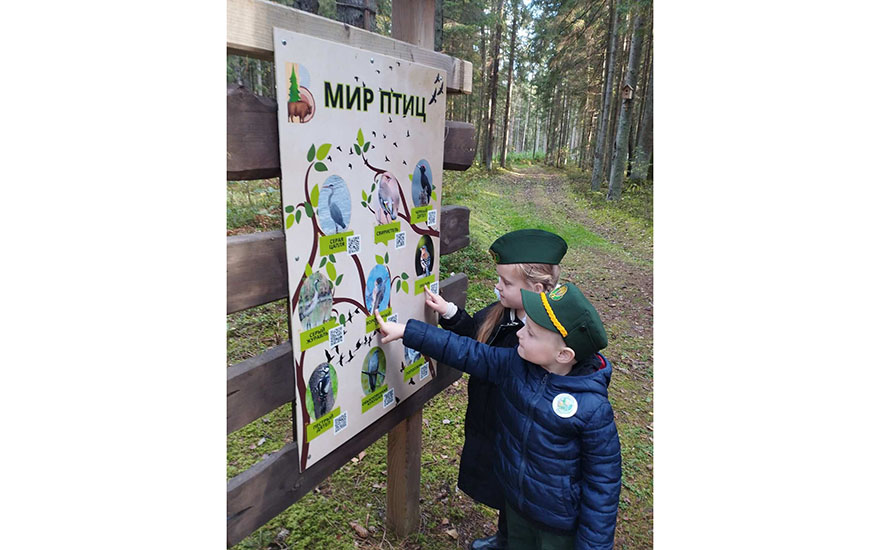В ходе экскурсии ребята выяснили, что лес — это многоэтажный дом, где каждый этаж заселяет определённая группа растений, животных, птиц. «Зубрята» отгадывали загадки о деревьях, измеряли толщину деревьев веревкой, рассматривали муравейник с помощью луп, составляли картинки животных из частей, повесили настоящие домики для птиц, собирали различный природный материал.