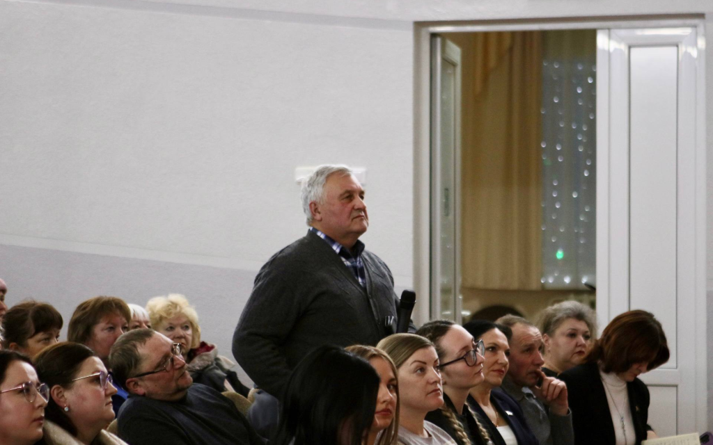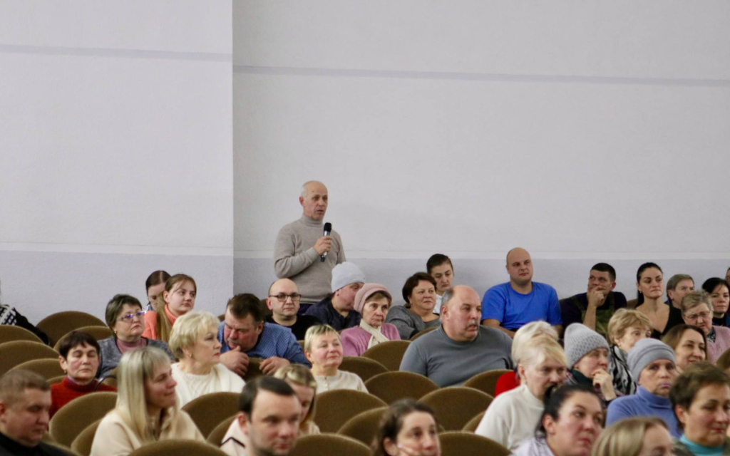 В Ивенце состоялся необычный для многих формат диалога: прямое и открытое общение руководства Воложинского района с местными жителями. Инициатором разговора выступил председатель райисполкома Виталий Бычковский, который вместе с заместителями, главой районного Совета депутатов Еленой Клачко и руководителями служб отвечал на вопросы из зала.