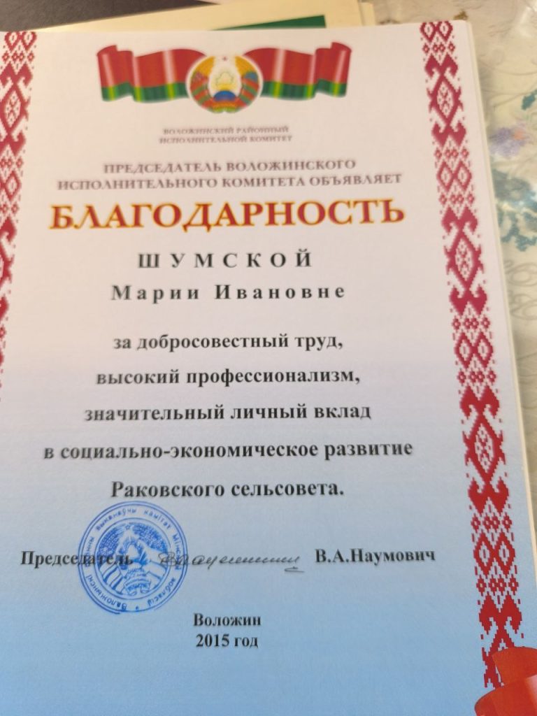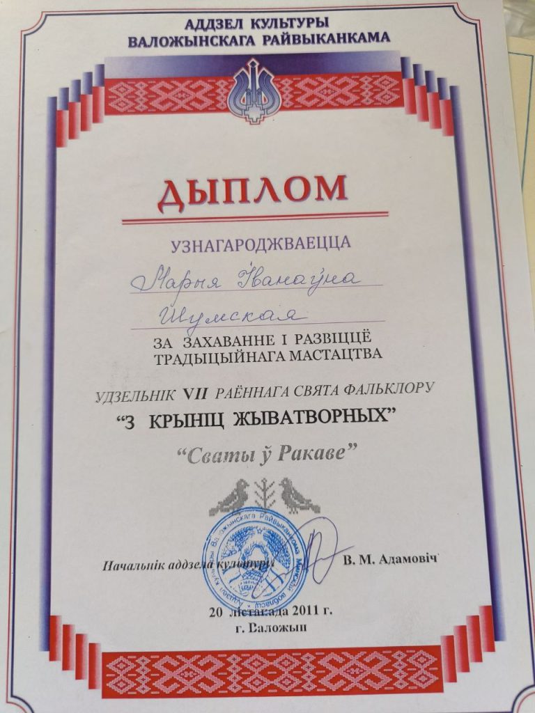 Волею случая мне встретилась невероятная женщина с множеством талантов и важной профессией. Она подарила мне чудесные часы общения и радости. Речь идет о жительнице агрогородка Раков, Заслуженном учителе БССР, ветеране труда, мастере вышивки Марии Ивановне Шумской.