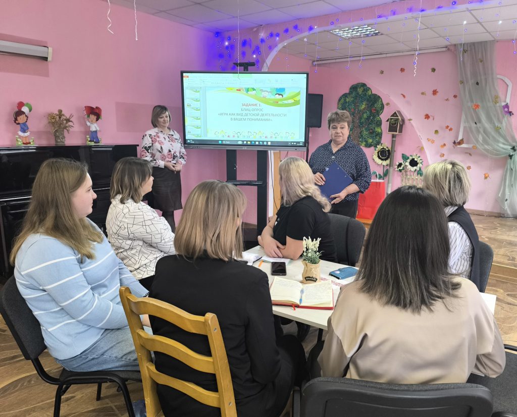 Педагоги разбирались, каким требованиям должна отвечать современная сюжетно-ролевая игра. Вместе с Тамарой Печеновой, воспитателем из Ивенца, они на практике изучили конкретные методы поддержки детской игры. Участники убедились: правильное сопровождение превращает обыгрывание сюжета в мощный образовательный инструмент.