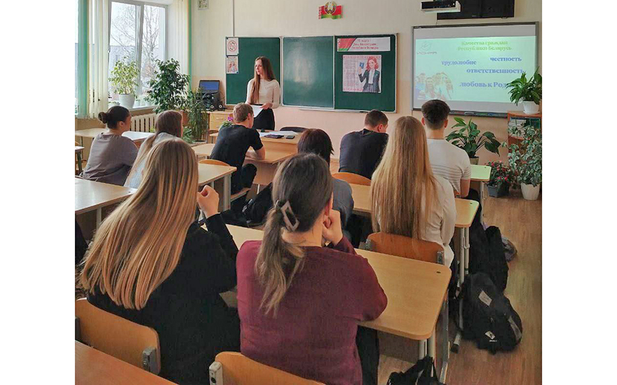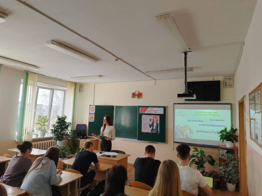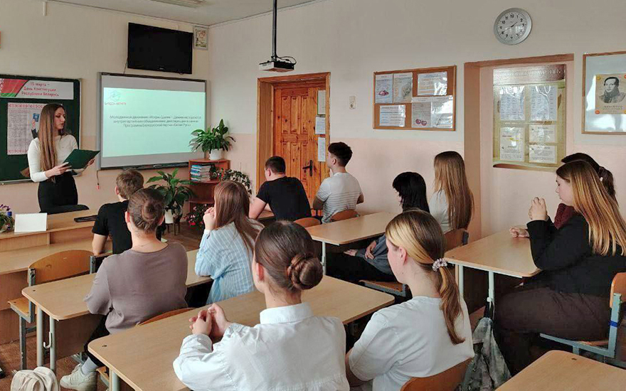 В рамках Единого урока, посвященного Дню Конституции Республики Беларусь, для учащихся 11 класса Воложинского района состоялась встреча с представителем молодежного движения «Искра» — Яной Ярота.