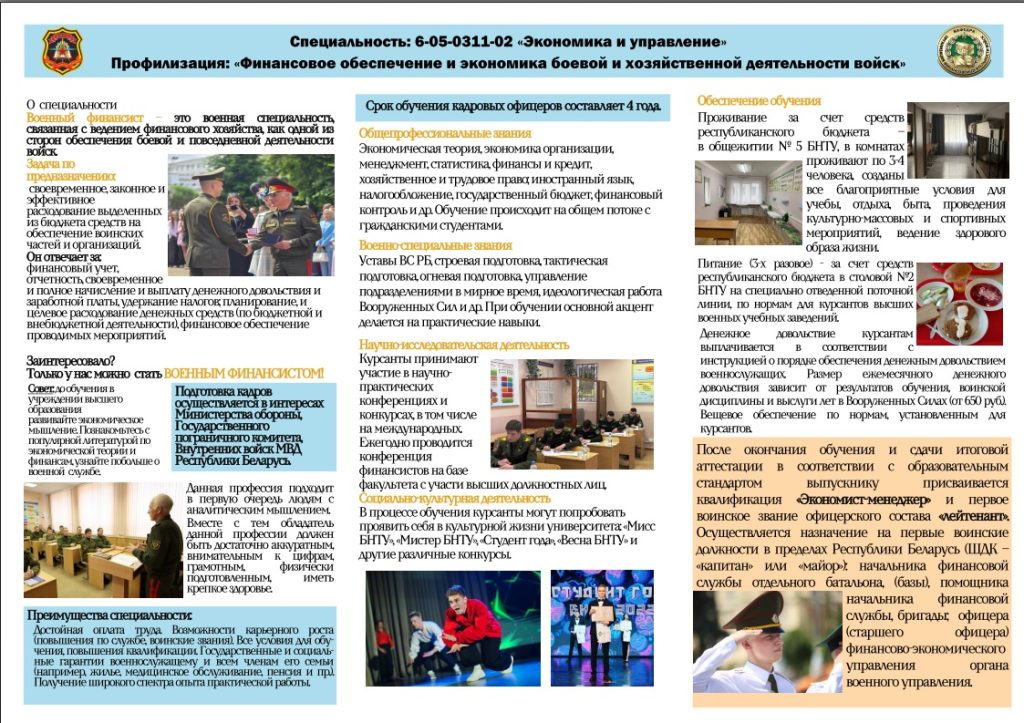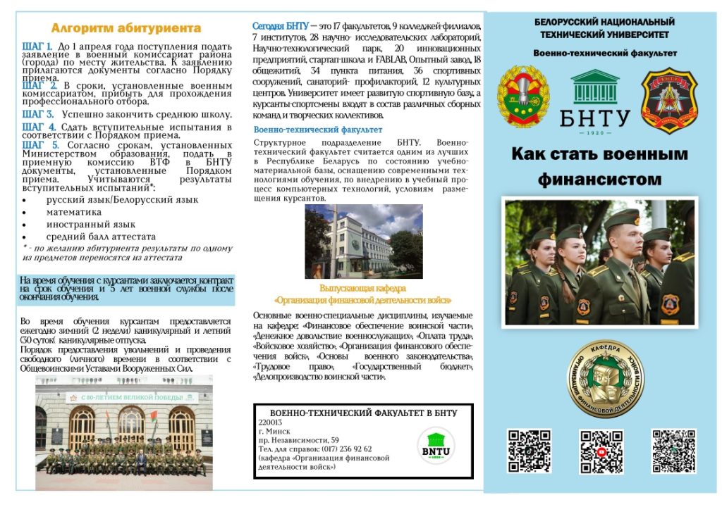 Вы ищете востребованную, стабильную и уважаемую профессию, которая сочетает в себе интеллектуальный труд, экономическую грамотность и службу Родине? Военно-технический факультет (ВТФ) Белорусского национального технического университета (БНТУ) предлагает уникальную возможность стать военным финансистом — специалистом, от которого зависит эффективность финансового обеспечения армии.