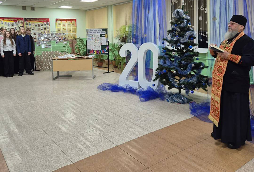 Отец Дмитрий поздравил учащихся с великим праздником Рождества Христова.