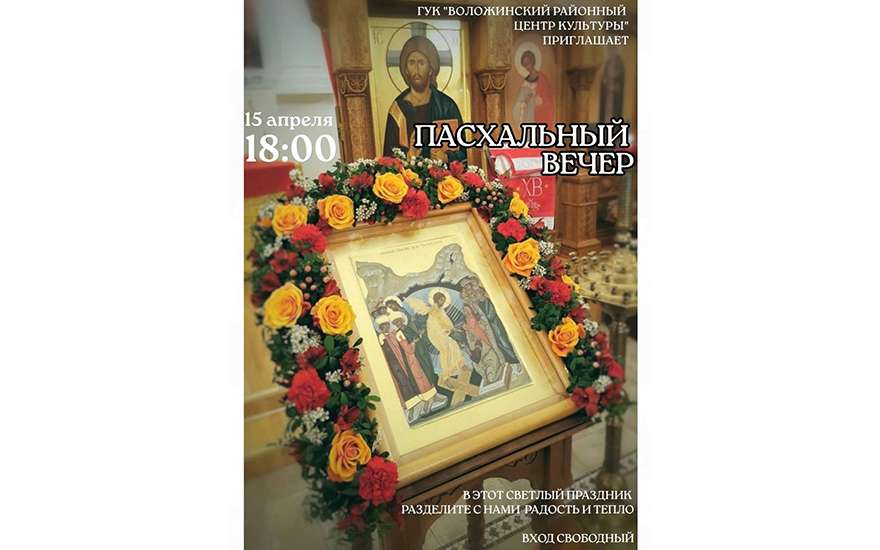 В среду, 15 апреля, Воложинский районный центр культуры проведет праздничную программу «Пасхальный вечер».