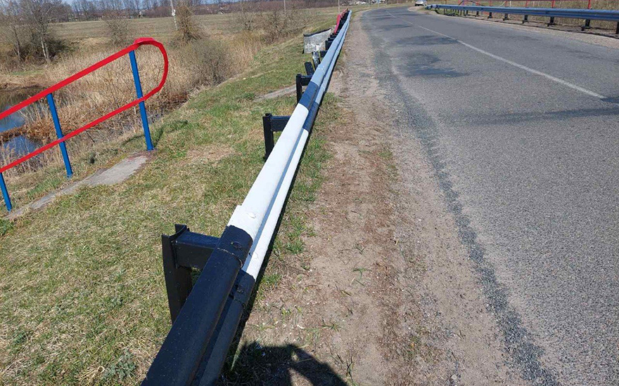 Работники ДРСУ-167 продолжают сезонное обновление инфраструктуры. На этот раз их задача — окраска элементов обустройства дороги, ведущей к агрогородку Городьки.