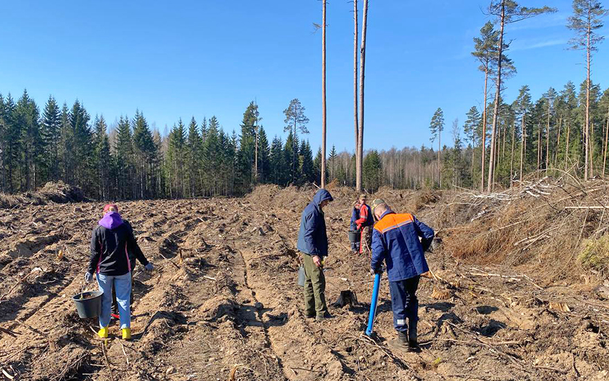 На территории Вишневского лесничества молодыми людьми было высажено около 5 тысяч саженцев сосны и ели под чутким руководством сотрудников Воложинского лесхоза.