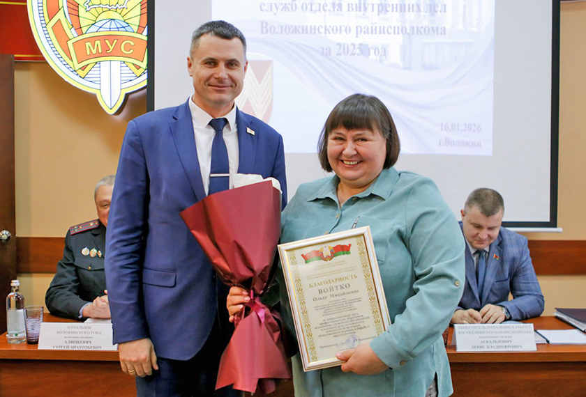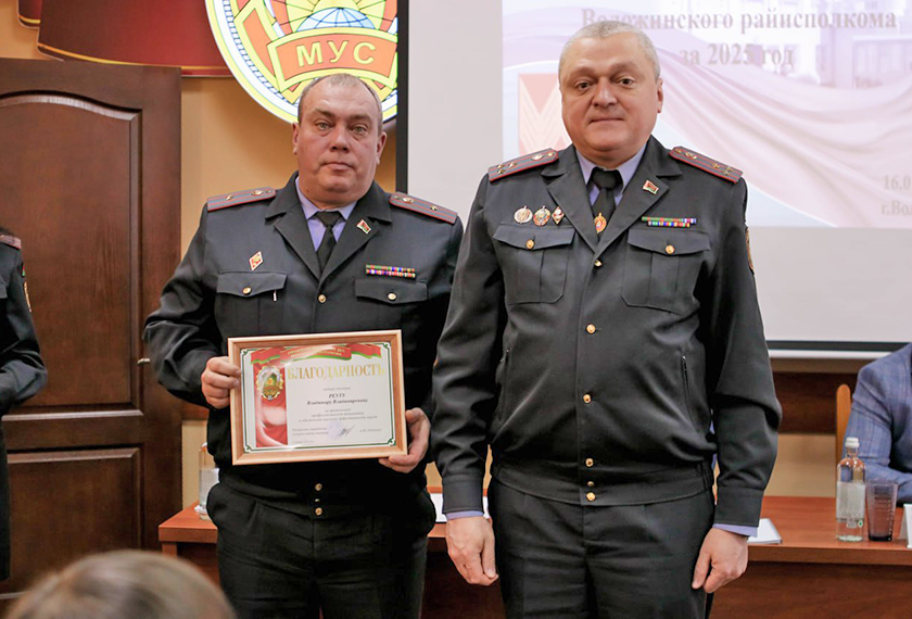 Благодарность председателя Воложинского райисполкома объявлена: начальнику штаба ОВД райисполкома капитану милиции Екатерине Бородако, паспортисту отделения по гражданству и миграции милиции общественной безопасности ОВД Воложинского райисполкома Ольге Войтко.