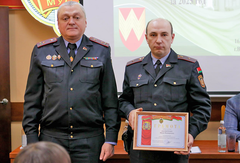 Грамотой УВД Миноблисполкома награждены: начальник отдела охраны правопорядка и профилактики милиции общественной безопасности подполковник милиции Валерий Жук, старший оперуполномоченный отделения уголовного розыска криминальной милиции майор милиции Юрий Касперчук.