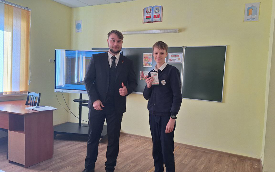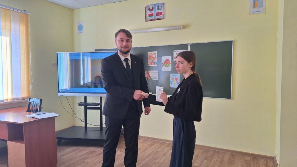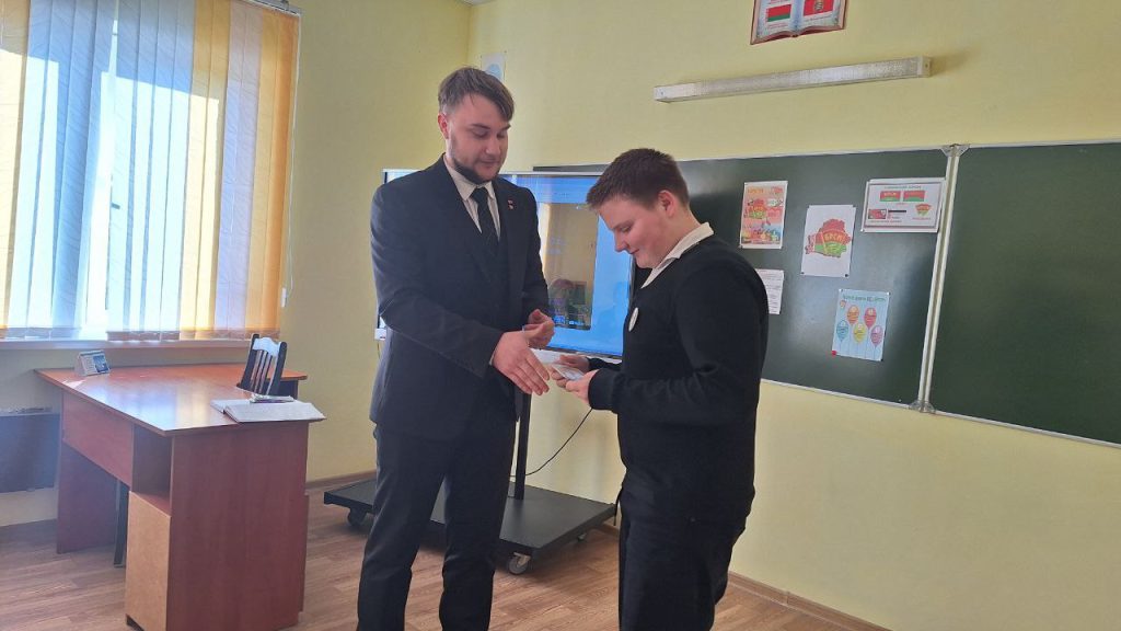 Сегодня, 17 марта, первый секретарь районного комитета БРСМ Артур Харлинский посетил ГУО «Судниковская СШ», чтобы лично вручить членские билеты новым активистам!