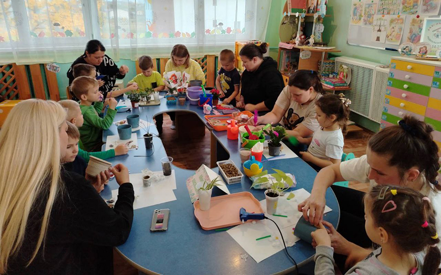 Затем — творческий мастер-класс, где дети и родители вместе украшали кашпо для своих растений.