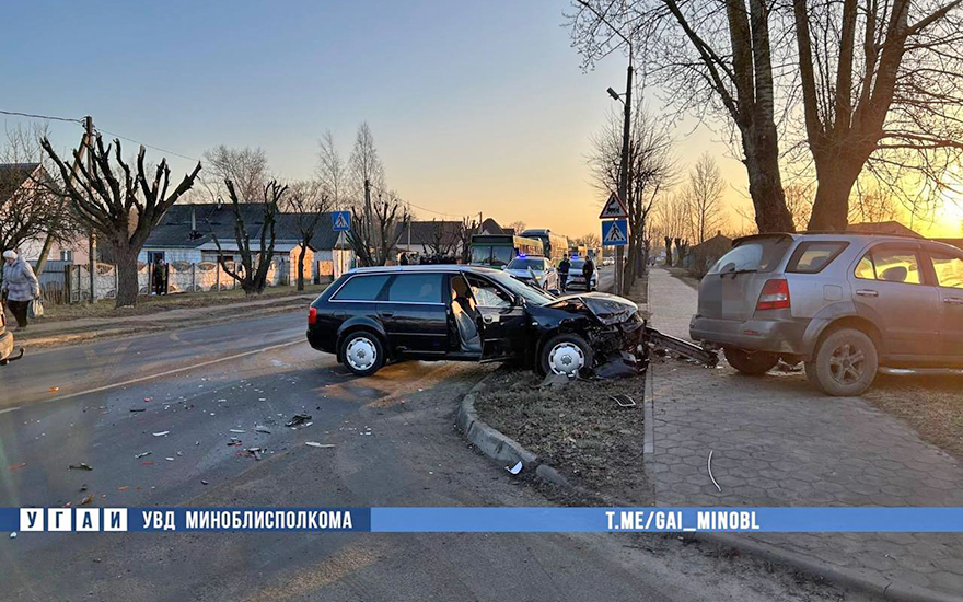 17 марта около 07:30 на ул. Ленина в г. Слуцке 41-летняя местная жительница управляя автомобилем Аudi А6, совершила наезд на остановившейся в полосе движения для осуществления левого поворота автомобиль Volkswagen под управлением 37-летнего водителя. В результате ДТП автомобиль Audi выехал на полосу встречного движения, где произошло столкновение с двигающимся во встречном направлении автомобилем Кia.
