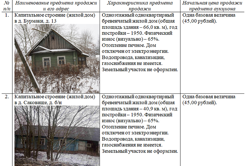 Извещение о проведении аукциона по продаже пустующего и выморочного жилых домов на территории Воложинского сельсовета