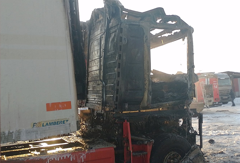 Пожарные расчеты незамедлительно выехали к месту вызова. Спасателям потребовалось несколько минут, чтоб ликвидировать возгорание. В результате пожара уничтожена кабина и моторный отсек грузового автомобиля Renault Magnum.