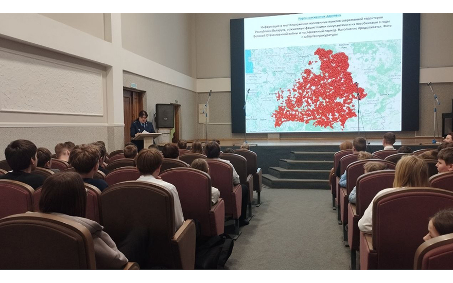 Анастасия Авдей рассказала ребятам о важном аспекте современности — расследовании уголовного дела о геноциде белорусского народа. Она привела ранее неизвестные факты, связанные с трагедией в Хатыни.