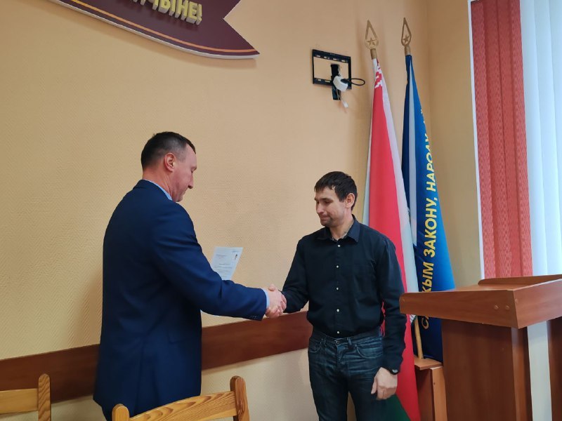 17 октября в Воложинском РОВД официально принесли Присягу на верность Республике Беларусь Любовь Зайцева, оператор машинного доения СХУ «Бобровичи» и Вадим Калашников, тренер-преподаватель по дзюдо ДЮСШ Воложинского района.
