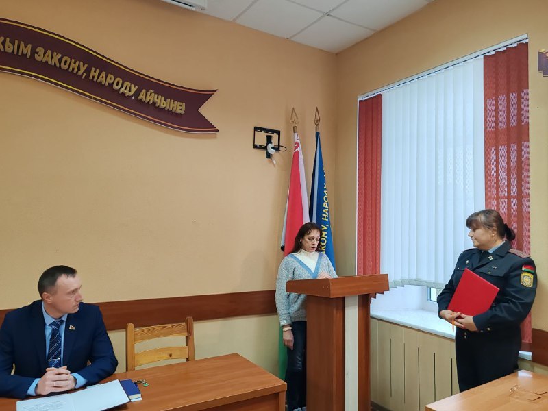17 октября в Воложинском РОВД официально принесли Присягу на верность Республике Беларусь Любовь Зайцева, оператор машинного доения СХУ «Бобровичи» и Вадим Калашников, тренер-преподаватель по дзюдо ДЮСШ Воложинского района.