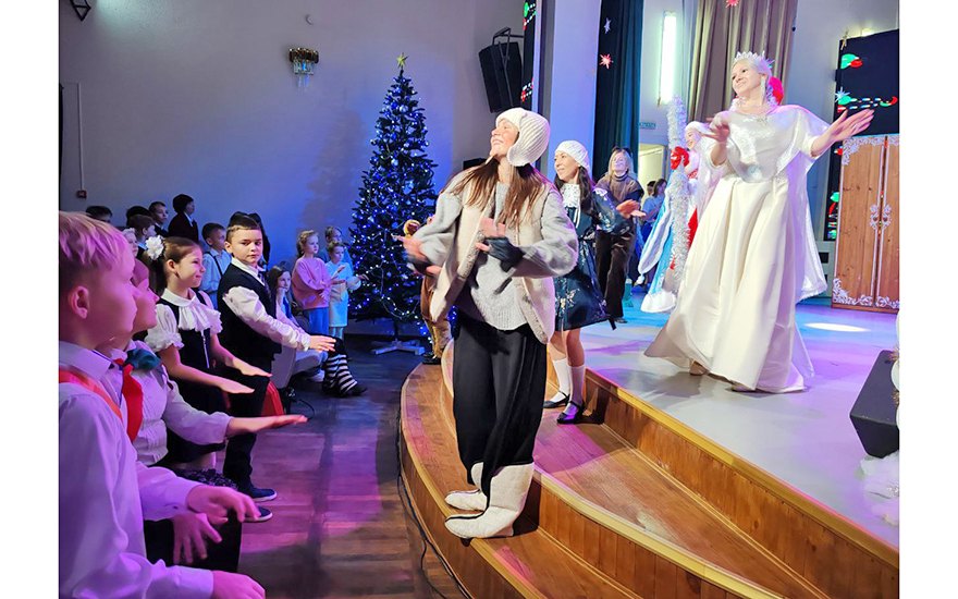 Учащиеся, достигшие успехов по итогам районных, областных и республиканских международных олимпиад, творческих конкурсов и спортивных соревнований, а также ребята, которые активно участвуют в общественной работе, и дети из многодетных семей окунулись в атмосферу волшебства и добрых превращений в рамках республиканской акции «Наши дети». Для них артисты районного центра культуры подготовили представление «Хроники Нарнии: Ледяная королева или как спасти Новый год».