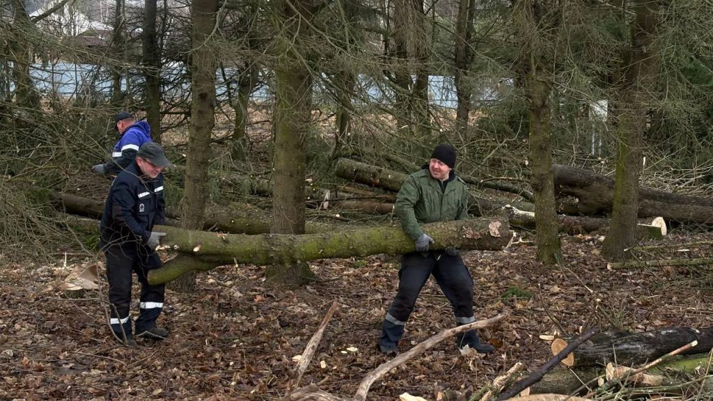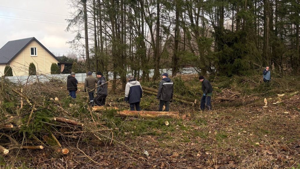 Вывозить спиленное помогали 40 единиц техники, которые работали без остановки.
