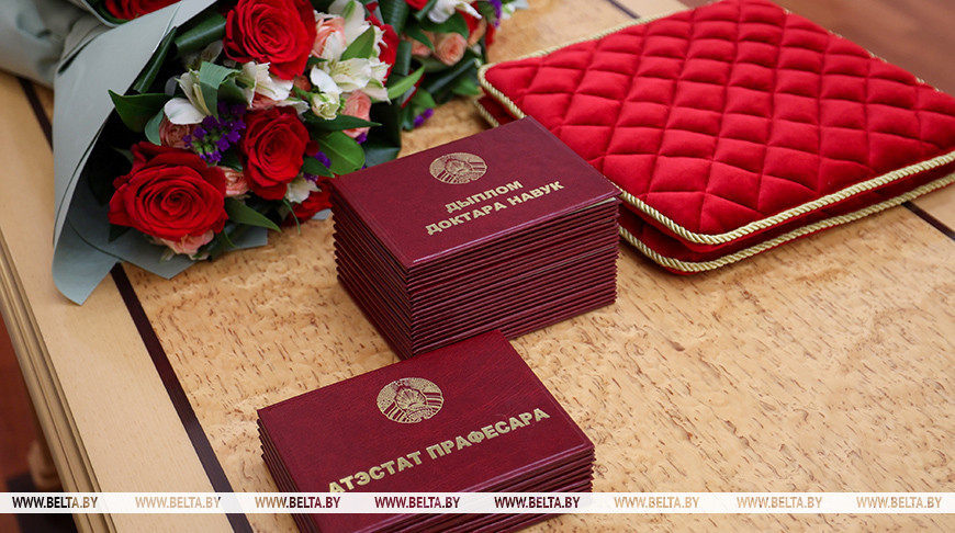 Президент Беларуси Александр Лукашенко вручил научным и научно-педагогическим работникам дипломы доктора наук и аттестаты профессора. Торжественная церемония состоялась во Дворце Независимости, передает БЕЛТА.