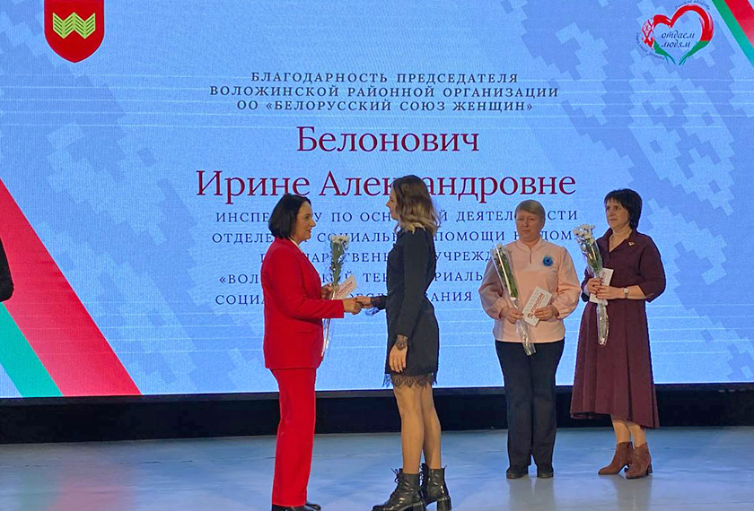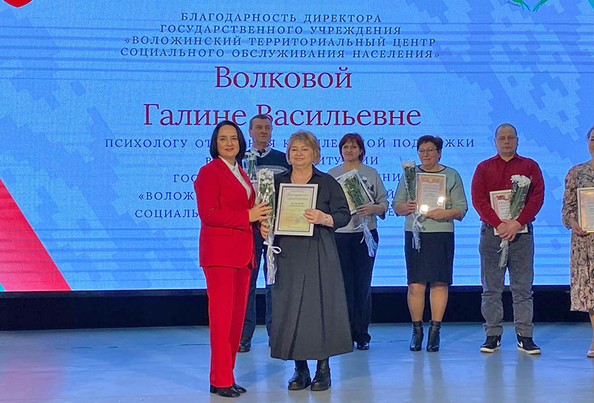 Именно таких людей почествовала на сцене начальник управления по труду, занятости и социальной защите райисполкома Светлана Раковец, выразив глубокую признательность всем, кто отдает свое сердце другим многие годы, и вручив им высокую награду – Почетную Грамоту комитета по труду, занятости и социальной защите Минского областного исполнительного комитета.