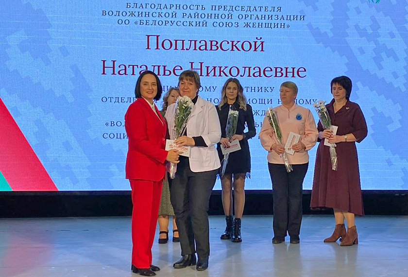 Галина Фадеевна выполнила почетную и приятную миссию награждения своих сотрудников не только как руководитель государственного учреждения, но и как председатель районной организации «Белорусский союз женщин», поблагодарив за общественную работу самых активных ее членов.