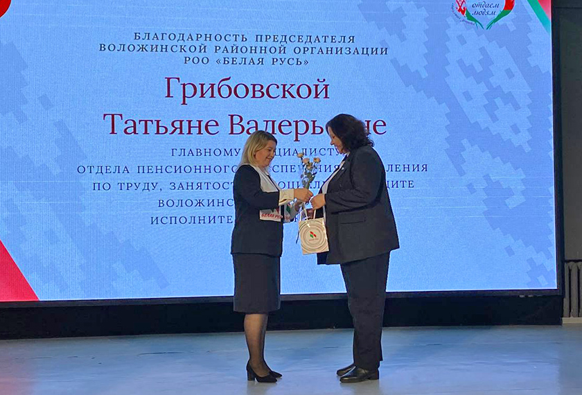 Не остались в стороне и представители других общественных организаций. Подарки в связи с профессиональным праздником вручили председатель районной организации «Белая Русь» Юлия Матус ипредседатель первичной профсоюзной организации Воложинского ТЦСОН Нина Радыно.