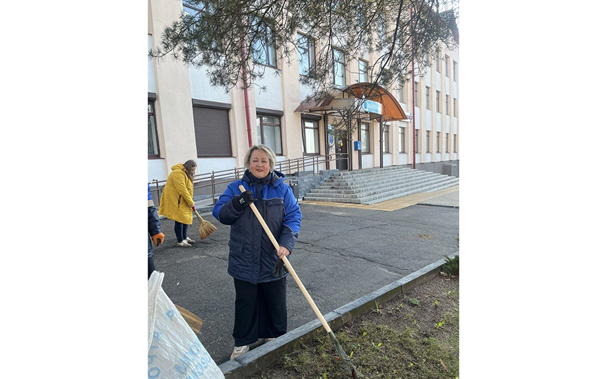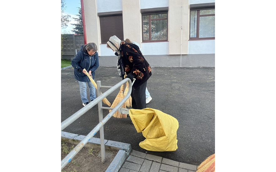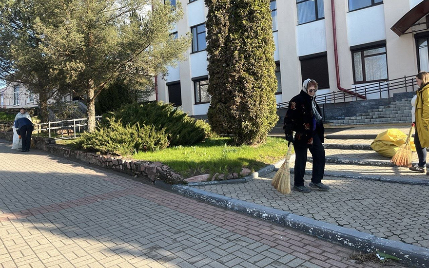 Вооружившись граблями, мётлами и мешками для мусора, они приводили в порядок прилегающую зону: подметали дорожки, очищали клумбы.
