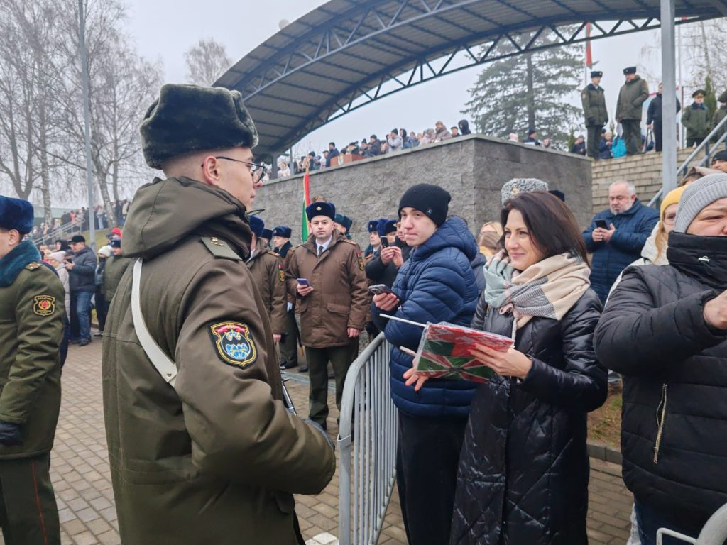 Заместитель председателя райисполкома Игорь Шакун также поприветствовал «виновников торжества»: – Слова клятвы, произнесенные перед лицом боевых товарищей, обязывают вас ко многому. В жизни военнослужащего – это главные слова, несущие особую значимость. Хочется надеяться, что время службы в этом подразделении позволит вам сохранить и преумножить лучшие традиции этой части и Вооруженных Сил Республики Беларусь. Желаю всем, чтобы тот отрезок времени, который вам суждено провести в рядах армии, прошел легко и незаметно, чтобы вы приобрели новых друзей и военную специальность. Пусть эти дни останутся в памяти на всю оставшуюся жизнь только хорошими впечатлениями.