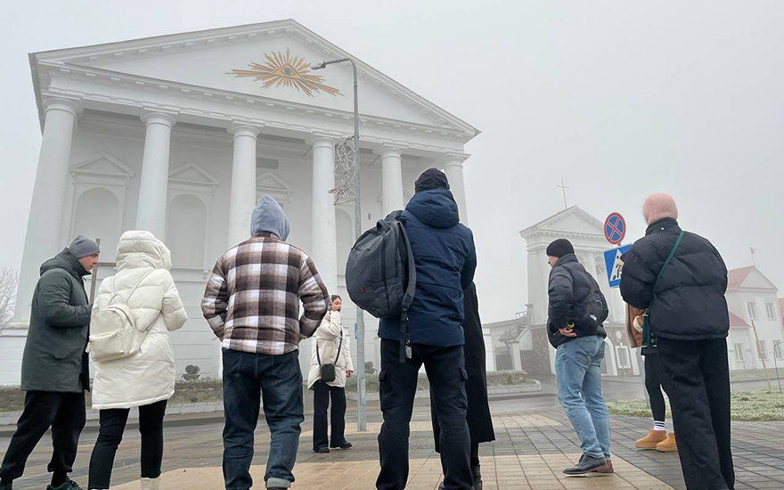Знакомство с городом началось с его сердца — центральной площади. Изящный костёл, возведённый графом Тышкевичем, сразу покорил гостей. Возле здания РОВД внимание привлекли музейные экспонаты под открытым небом — винтажный автомобиль и мотоцикл. А у скульптуры всадника блогеры с энтузиазмом поддержали местную традицию: загадали желания и натерли на счастье подкову.