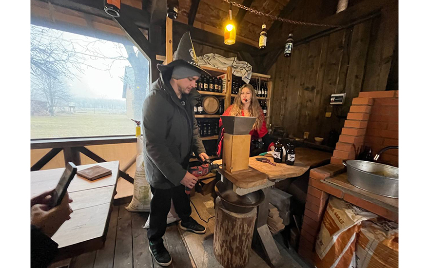 Далее маршрут тура пролёг через деревню Заболоть Ивенецкого сельсовета, где хозяйка Мария угощала домашней комбучей и элем и вовлекла всех в процесс приготовления. А пушистые местные коты добавили уюта и колорита.