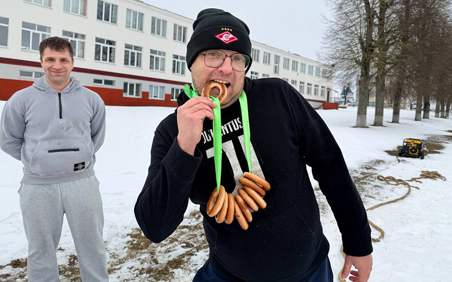 А главные страсти разгорелись во время перетягивания каната — победители получили оригинальный приз — связку аппетитных бубликов.