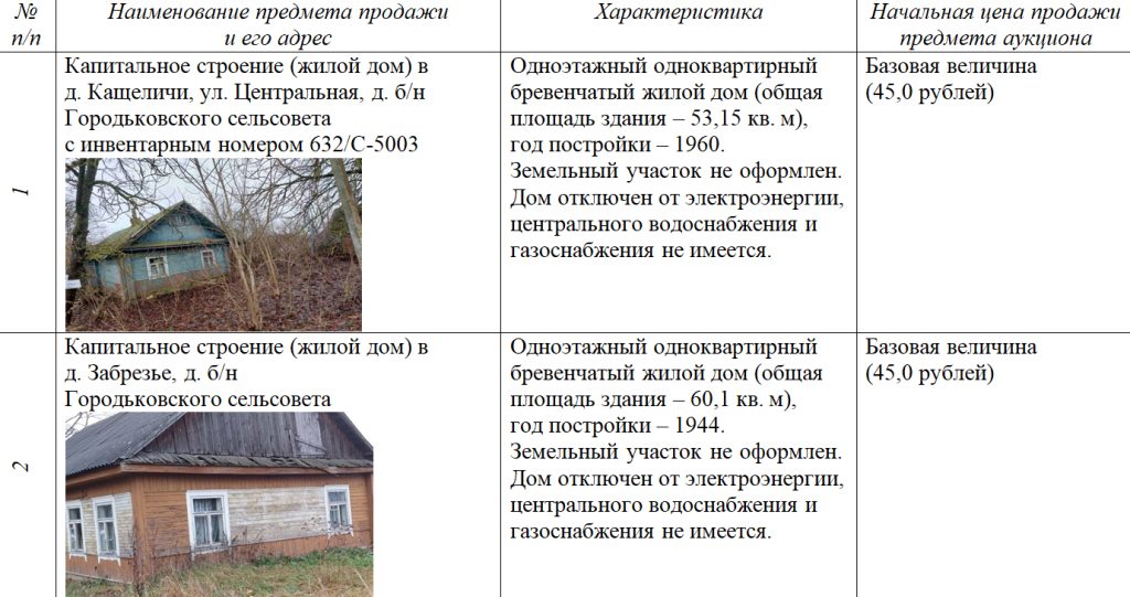 Начальная цена продажи предмета аукциона – одна базовая величина (45,0 бел. руб.).
