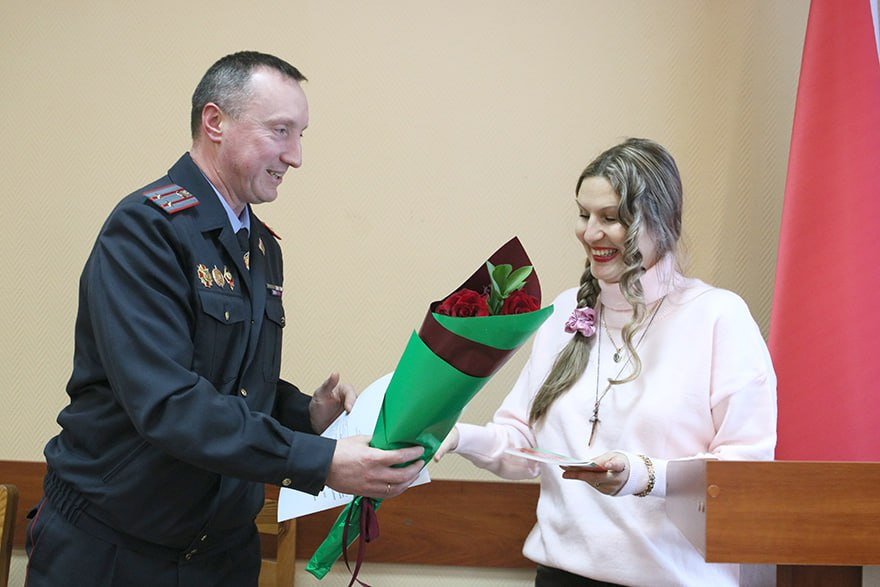 Со знаменательным событием Марию Голобурдо поздравил заместитель начальника Воложинского РОВД Константин Сосновский, начальник отдела по гражданству и миграции Татьяна Цаюн.