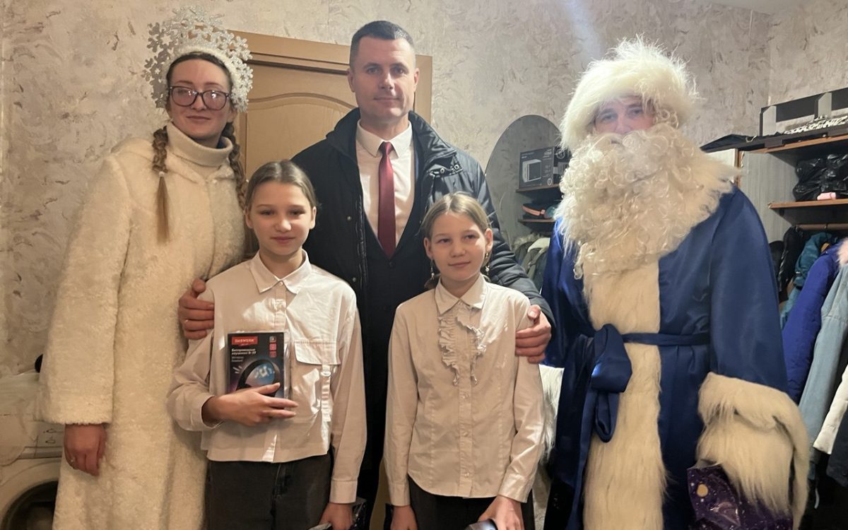 Сегодня дом семьи Каминских в Воложине наполнился радостью и самыми настоящими новогодними чудесами. С добрыми поздравлениями и подарками к сестрам Арине и Даше, ученицам средней школы №1, пришли председатель Воложинского райисполкома Виталий Бычковский, а также долгожданные Дед Мороз и Снегурочка.