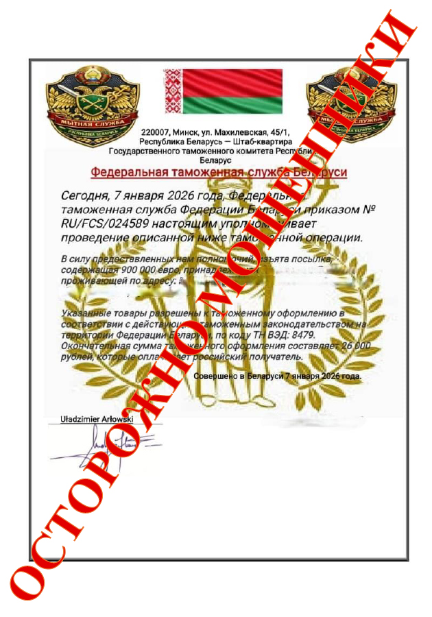 В Минскую региональную таможню поступают обращения граждан в отношении международных почтовых отправлений (далее – МПО). Согласно таким обращениям в адрес граждан Российской Федерации поступают требования из таможенных органов Республики Беларусь оплатить товар, пересылаемый МПО, изъятый таможенными органами Республики Беларусь.