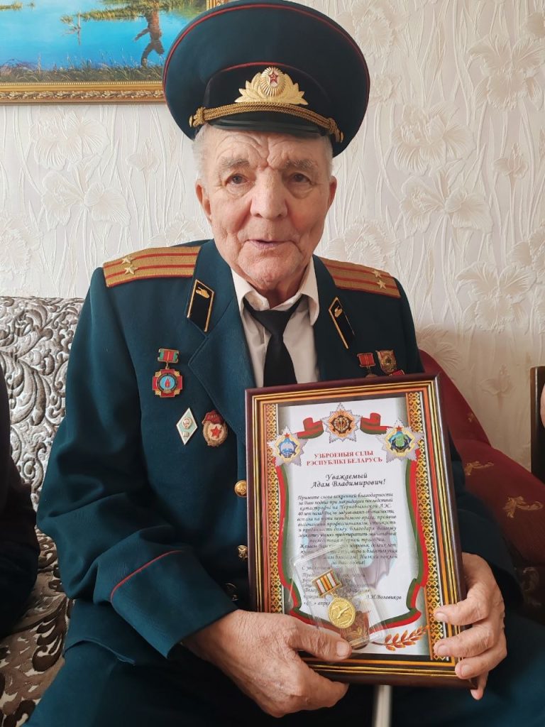 Житель Воложина, служивший в то время политруком в воинской части в Старых Дорогах, майор Адам Унучек также был на передовой не один раз. Сегодня, спустя сорок лет, накануне скорбной даты отдать дань уважения Адаму Владимировичу за его подвиг пришли офицеры запаса районного отделения Белорусского союза офицеров, членом которого является и ликвидатор.