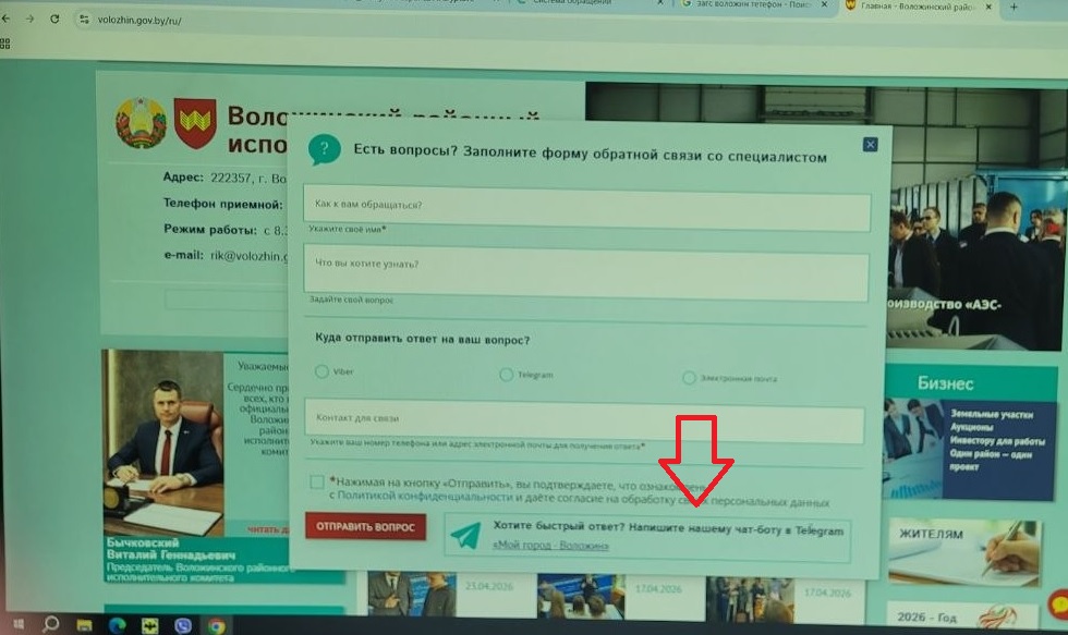 С 1 августа 2026 года по поручению председателя Миноблисполкома Алексея Кушнаренко онлайн-консультанты заработают по всей области. Но пионером и маяком для остальных стал именно наш Воложинский райисполком. Идея родилась в рамках реализации Директивы № 2: чиновники должны быть ближе к людям, а не прятаться за бумагами. Главный плюс: зашел на официальный сайт Воложинского райисполкома, выбрал вкладку «Задайте вопрос», при этом людям не навязывают один-единственный канал. В рубрике «Хотите быстрый ответ?» висит ссылка на Telegram-чат-бот «Мой город Воложин». Гражданин сам может выбрать, как ему задать вопрос и как удобно получить ответ: через Viber, Telegram или старую добрую электронную почту. Цифры сухие, но красноречивые: только с июня 2025 года через эти каналы коммуникации пришло 565 сообщений. Люди не стесняются ни в форме, ни в содержании. Но есть истории, от которых екает сердце.