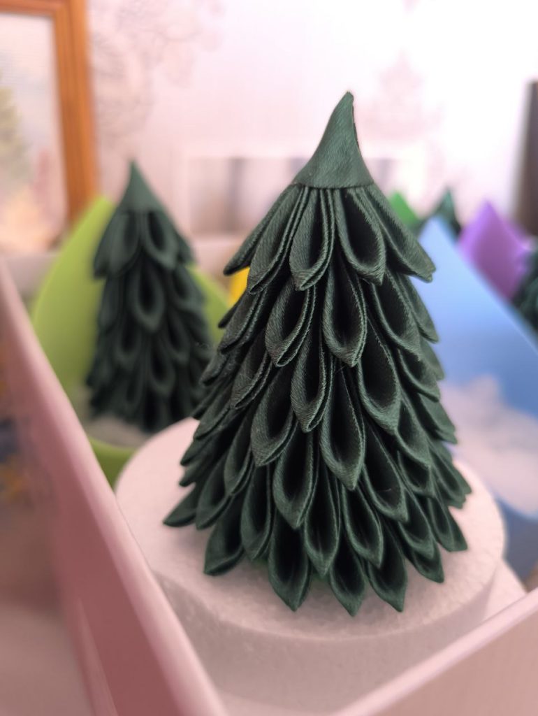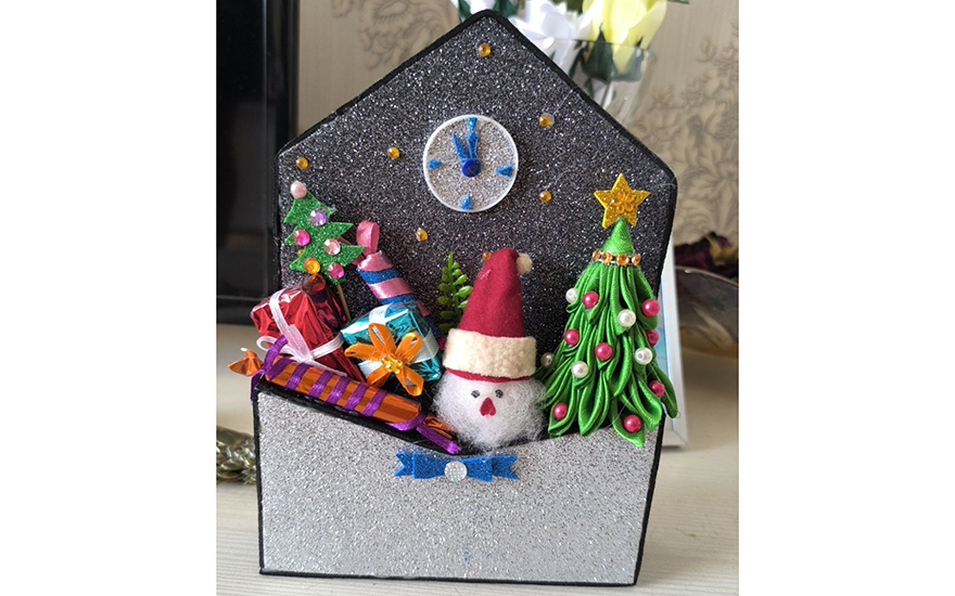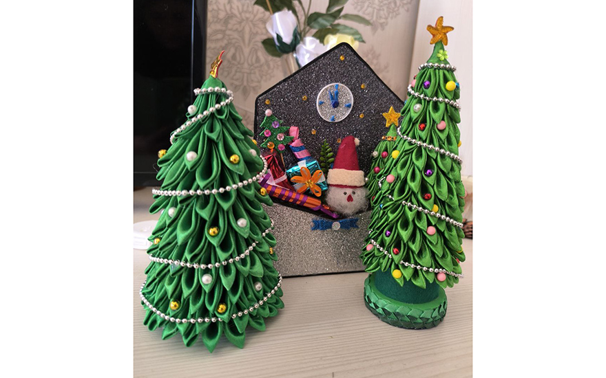 Она постоянно пробует новые техники и виды изделий, часто приурочивая их к праздникам. Ее изящные цветочные композиции из атласных лент способны преобразить любой сюрприз. Сейчас в разгаре подготовка к Новому году: уже готовы зеленые елочки, сказочные саночки с подарками и блестящие конверты – каждый из них может стать как дополнением, так и самостоятельным презентом.