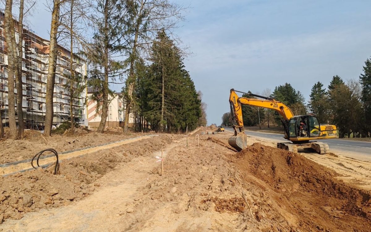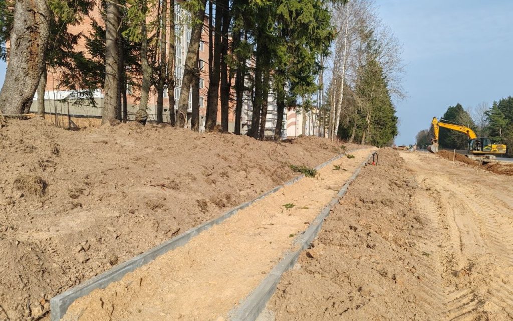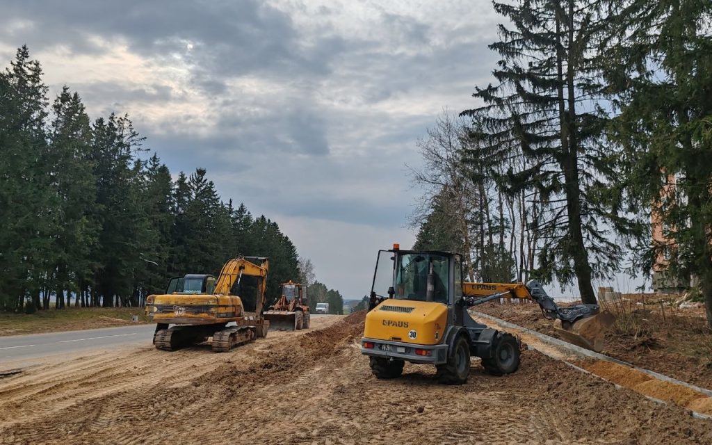 Задействованы два самосвала, два экскаватора, погрузчик, мини-погрузчик, трактор с прицепом, грунтовый каток. В скором времени появятся две автобусные остановки, а соответственно, карманы, полосы торможения и разгона. Остановочный павильон будет установлен только с одной стороны: в сторону города. Также укладывается тротуар шириной 2,25 метра и длиной 306 метров. Параллельно с ним такой же протяженностью проляжет велосипедная дорожка.