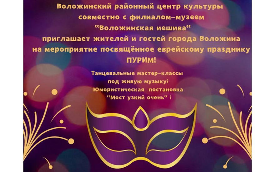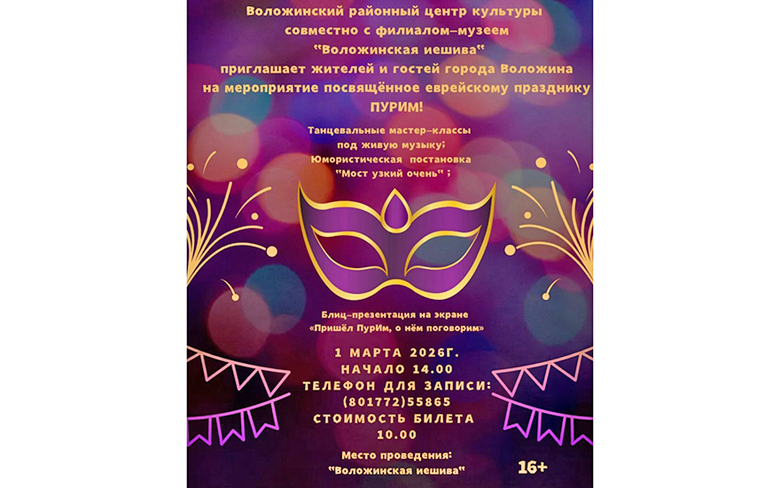 1 марта 2026 года Воложинский районный центр культуры совместно с филиалом-музеем «Воложинская иешива» подготовили для жителей и гостей города яркую программу в честь еврейского праздника Пурим.